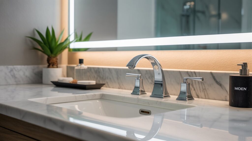 Consider your style preferences, sink type, and desired features like touchless operation or water efficiency. Moen’s range ensures that you can find a faucet that aligns perfectly with your modern bathroom faucets and overall bathroom design ideas.