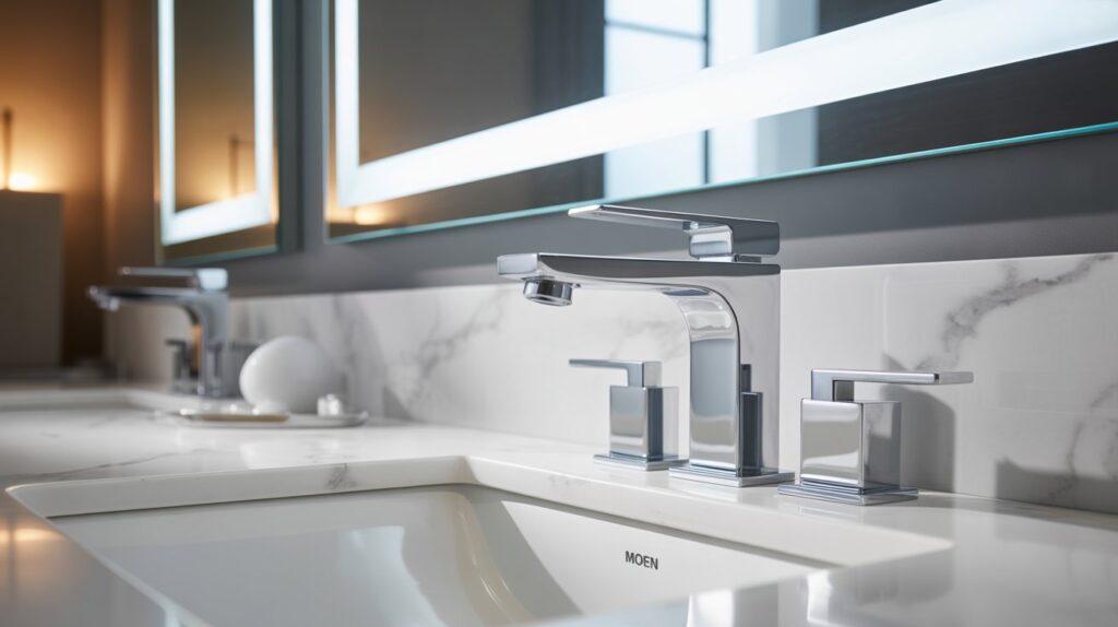 Additionally, Moen’s design philosophy focuses on blending aesthetics with function. Their water-efficient faucets seamlessly merge eco-friendly performance with modern beauty, ensuring your bathroom looks stunning while supporting sustainability. Each design reflects Moen’s commitment to craftsmanship and attention to detail, making their faucets a perfect balance between luxury and practicality.